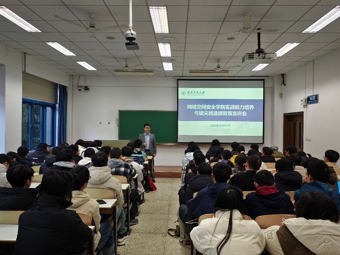 面向全体大一学生举办实战能力培养与拔尖班选拔政策宣讲会。学院副院长刘志强出席会议并作系统介绍,现场反响热烈。