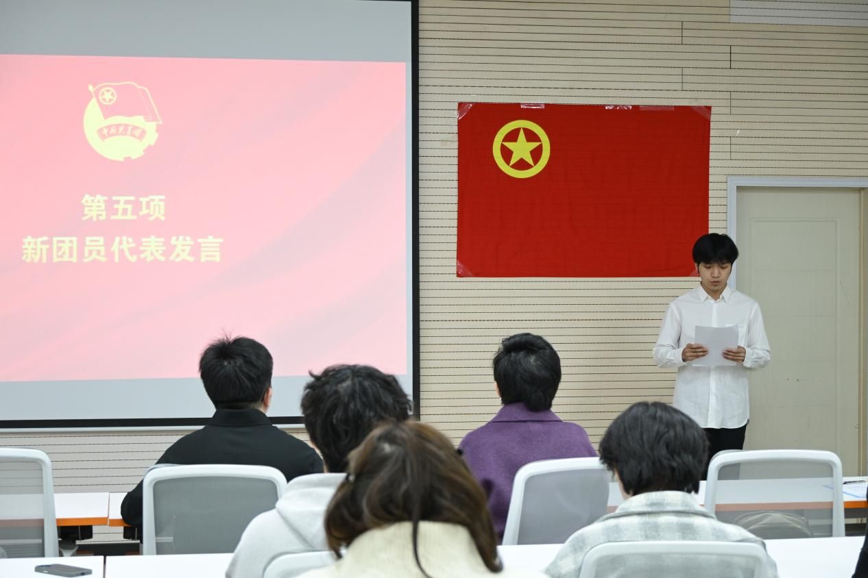 在学院楼C101-1教室举行2025年新发展团员入团仪式。学院党委副书记杜瑶、团委书记付强出席仪式,2025年新发展团员及入团积极分子参加活动,仪式由学院团委副书记董子瑜主持。