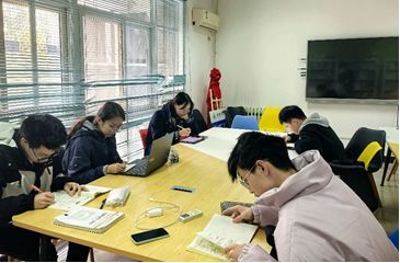 图为朋辈导师与同学们一同学习