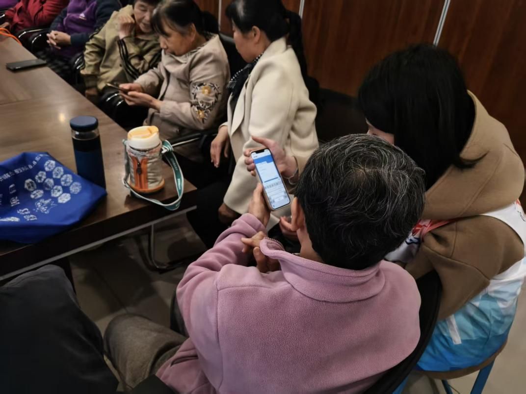 志愿者帮助社区居民使用智能手机