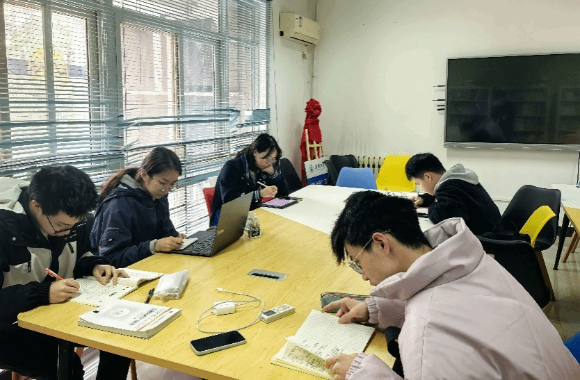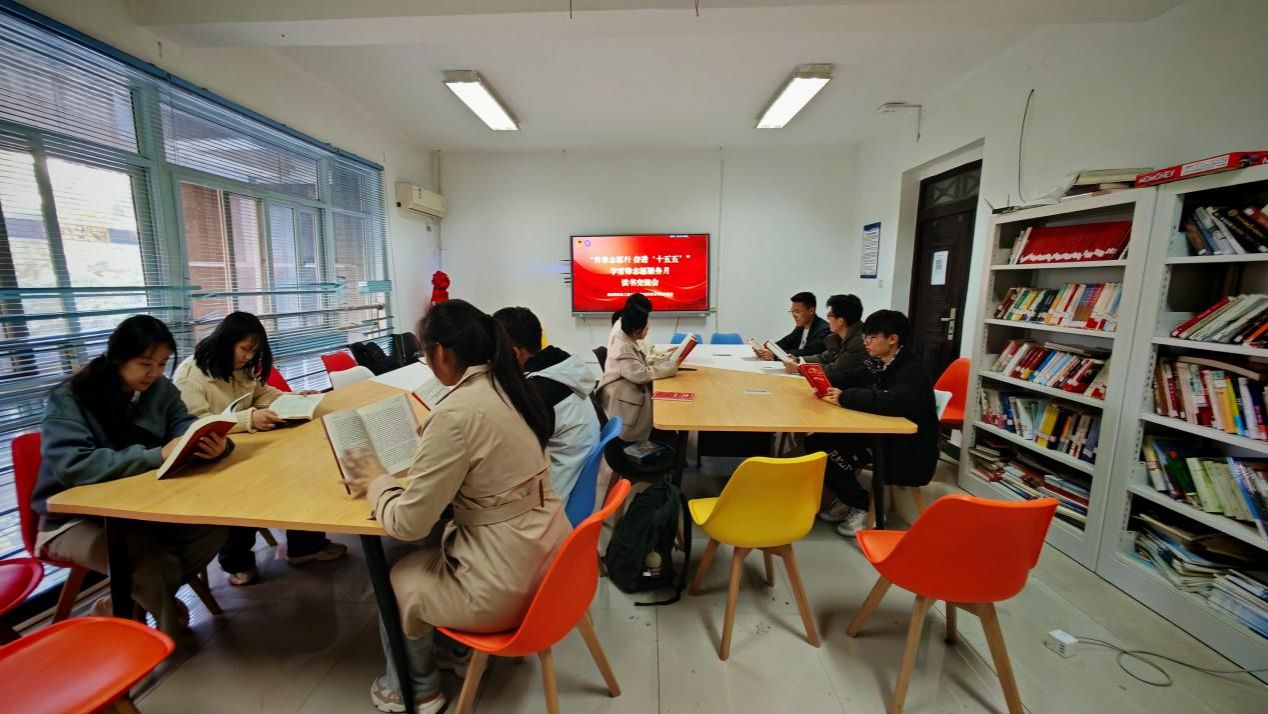 读书交流会现场同学们研读学习资料