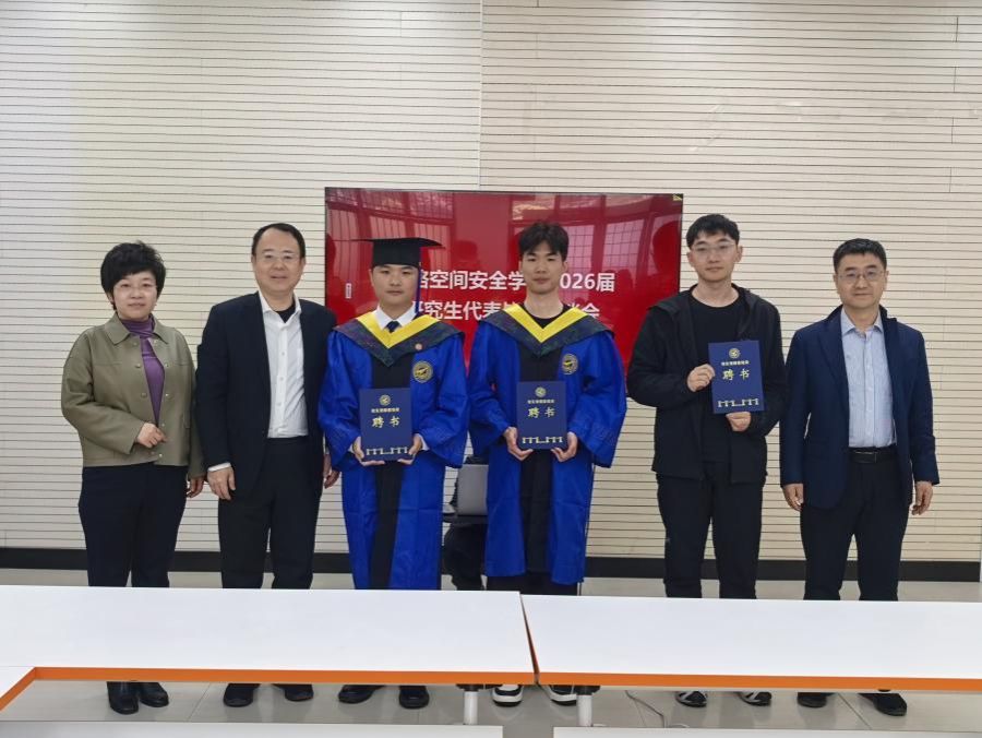 2026届研究生毕业生班级联络员聘任仪式”。张文涛、刘志强、杜瑶为班级联络员颁发了聘书。