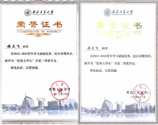 时光匆匆,西工大本科四年让我收获满满,在西工大“总师育人”文化熏陶下,我迅速成长,既追求工程能力的扎实提升,也努力涵养人文素养与人格力量。在这里我结识了良师益友,在我成长的道路上陪伴我、鼓舞我,让我成为一个真正的有能力独当一面的成年人。最后衷心感谢母校与学院的栽培与支持,愿未来的我不负韶华,笃行不怠。更愿母校与学院薪火不息、弦歌不辍,行远自迩,臻于至善。