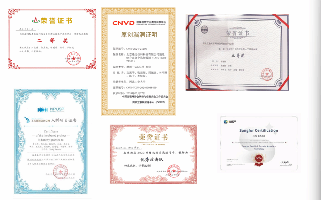在专业实践方面,陈十表现出极强的科研意识和实操能力:他曾主持国家级大学生创新创业训练计划项目,并获评“良好”结题成果,项目成功入孵校内众创空间;作为网络空间安全创新实践基地成员,他多次参与国家级、省级网络安全类学科竞赛,取得优异成绩,并在网络攻防演习中荣获“优秀攻击队”称号。